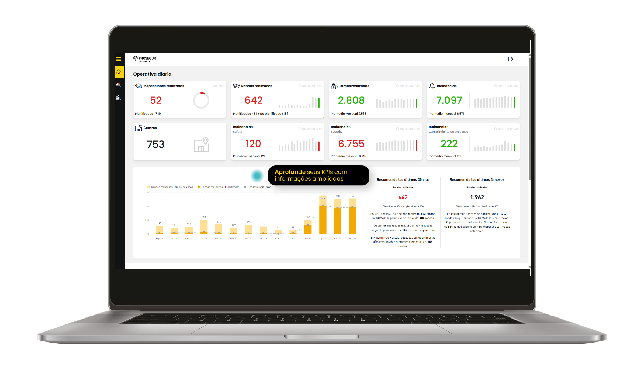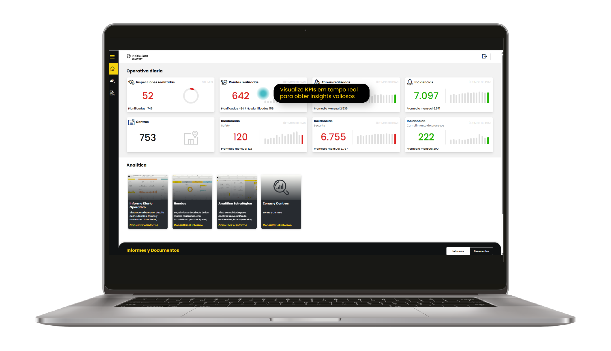 Através de um ambiente personalizado e intuitivo, os usuários podem acessar todas as informações relevantes dos seus centros, consultar o estado dos serviços contratados, acompanhar as tarefas de vigilância e estar a par de qualquer novidade que ocorra.